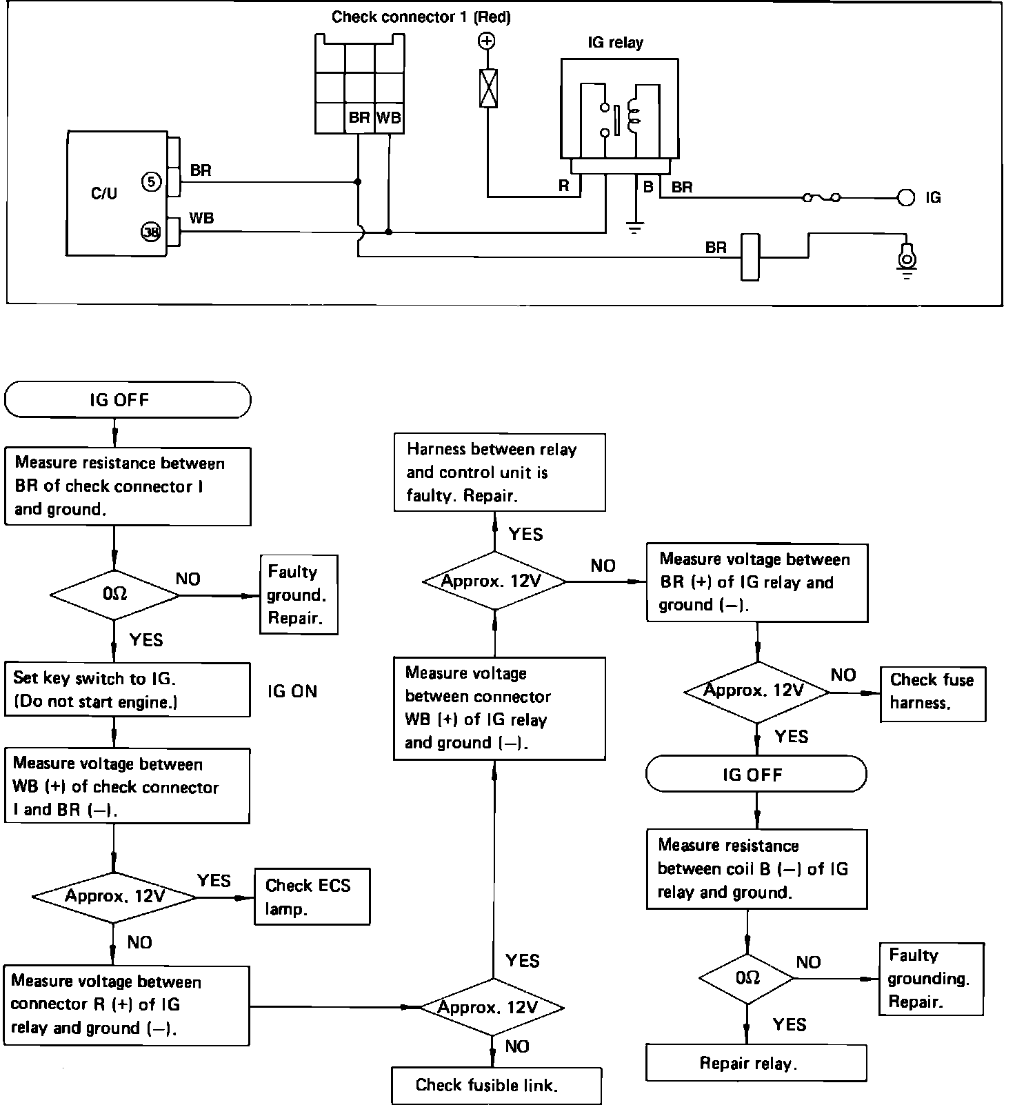 Fig. 3 EGI system troubleshooting chart. Checking ground of control unit power supply.: