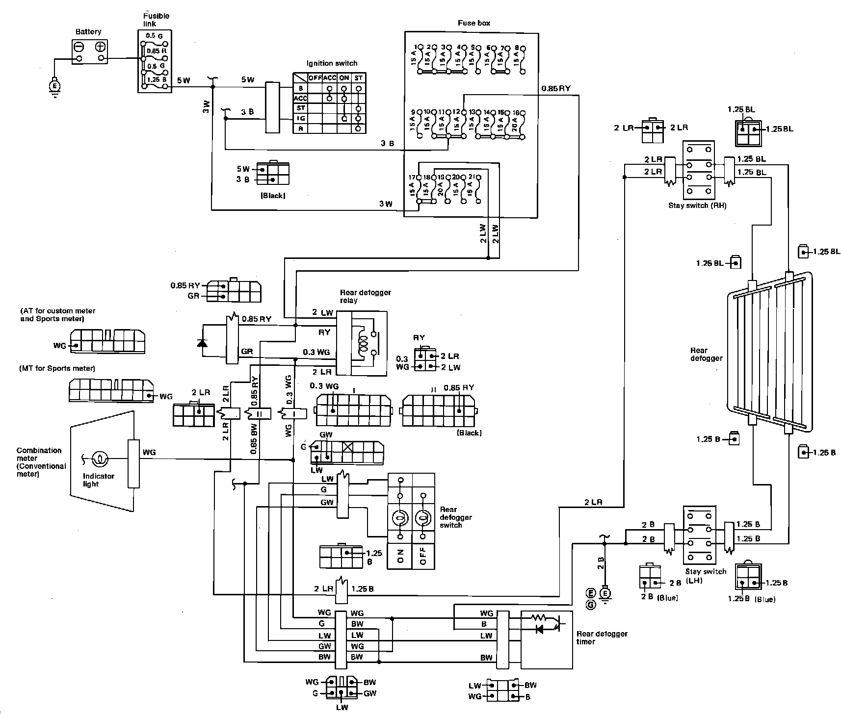 Fig. 98 Rear Window Defogger Wiring Circuit. 3 Door Models Exc. XT: