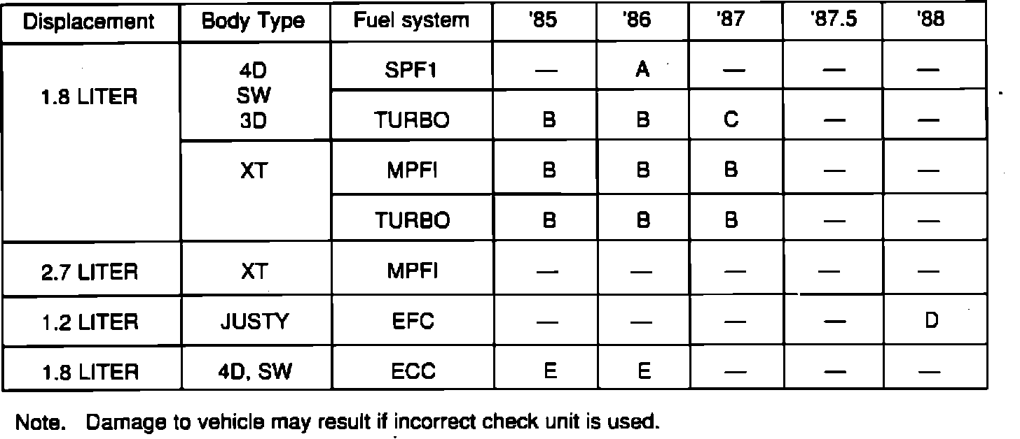 APPLICABILITY 1985 TO 1988 "L" SERIES, XT, AND JUSTY VEHICLES