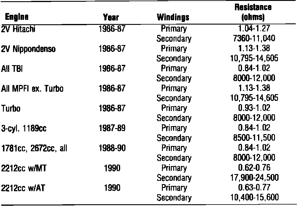 Fig. 7 Ignition Coil Specifications: