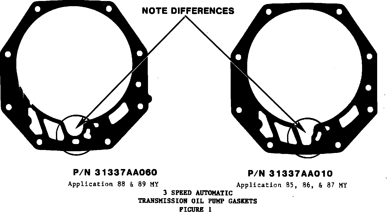 NOTE 2: P/N X3131AA002 includes 2 oil pump housing gaskets (See Figure 1). The oil pump gaskets are not interchangeable. Carefully match the new gasket with the original gasket. The oil pump gasket included in kit P/N X3131AA001 should also be checked with the original gasket.