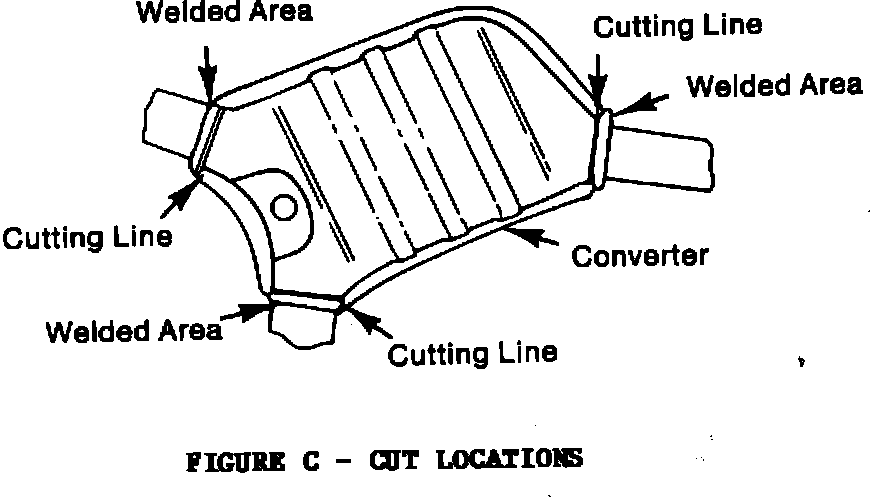 catalytic cover shield. Bolt-On covers can be unbolted while the welds on the weld-on cover can be broken by gripping with the vise grip pliers and bending back and forth until broken. The weld-on cover will not be re-used, however, bolt-on covers should be re-used. Do not remove the oxygen sensor. Take care not to damage the sensor during rebuild.
