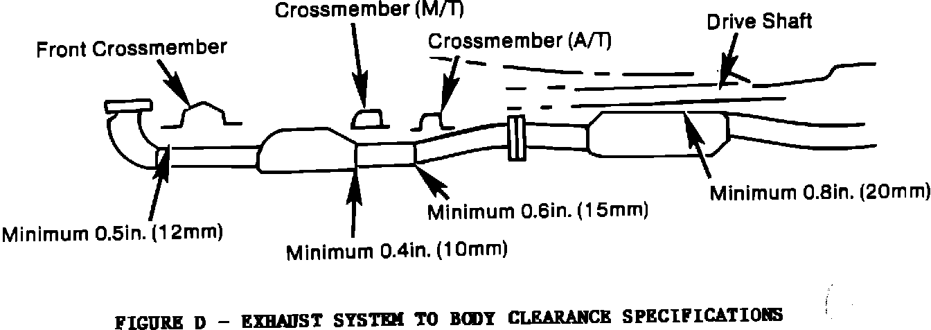 FIGURE D - EXHAUST SYSTEM TO BODY CLEARANCE SPECIFICATIONS: