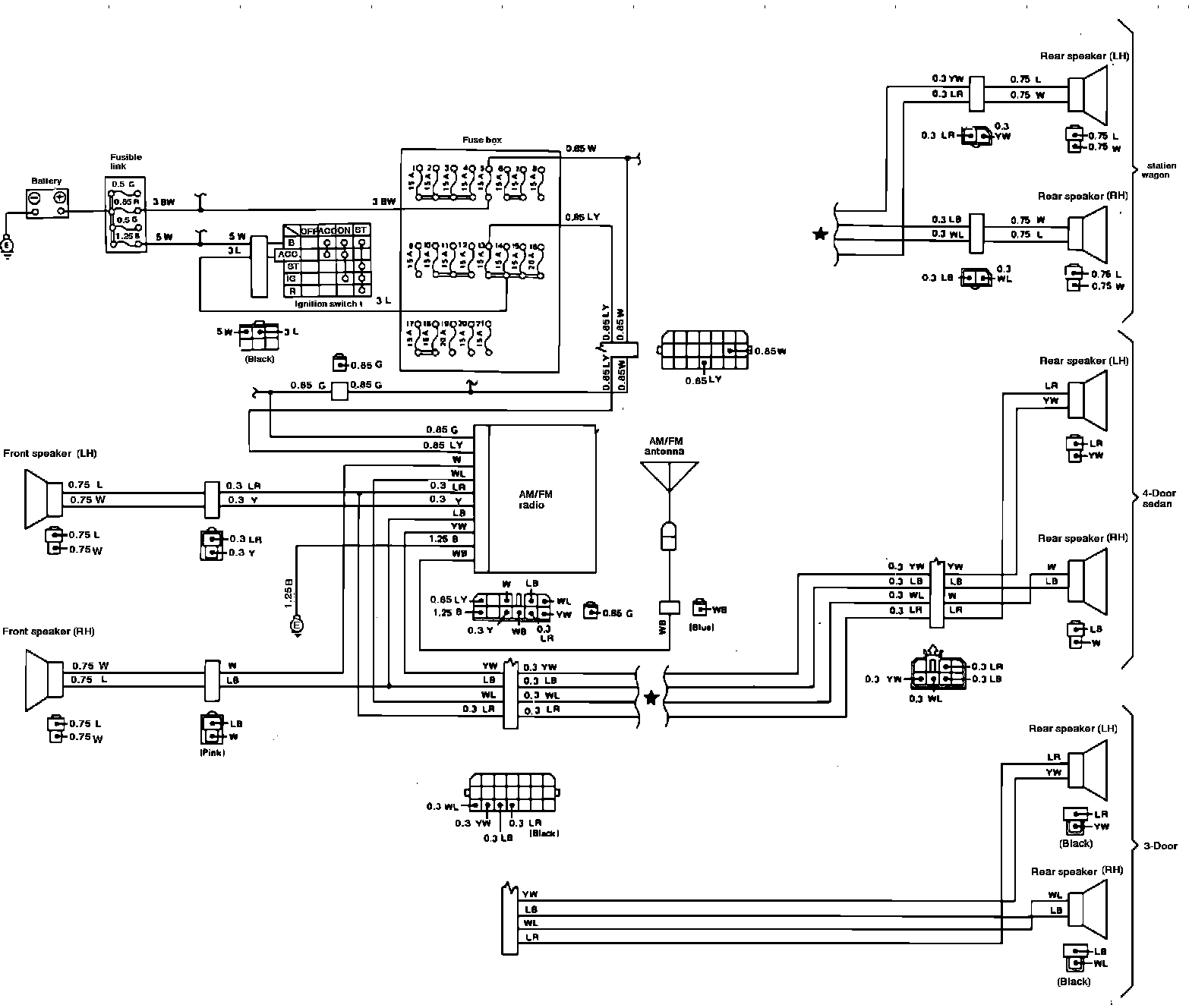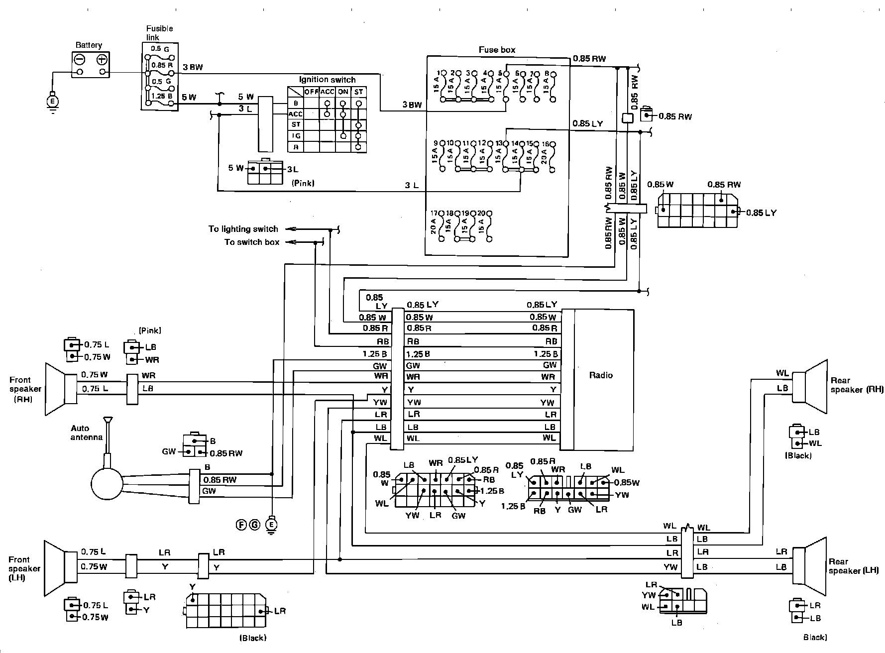 Fig. 95 Radio Wiring Circuit. Models Exc. XT: