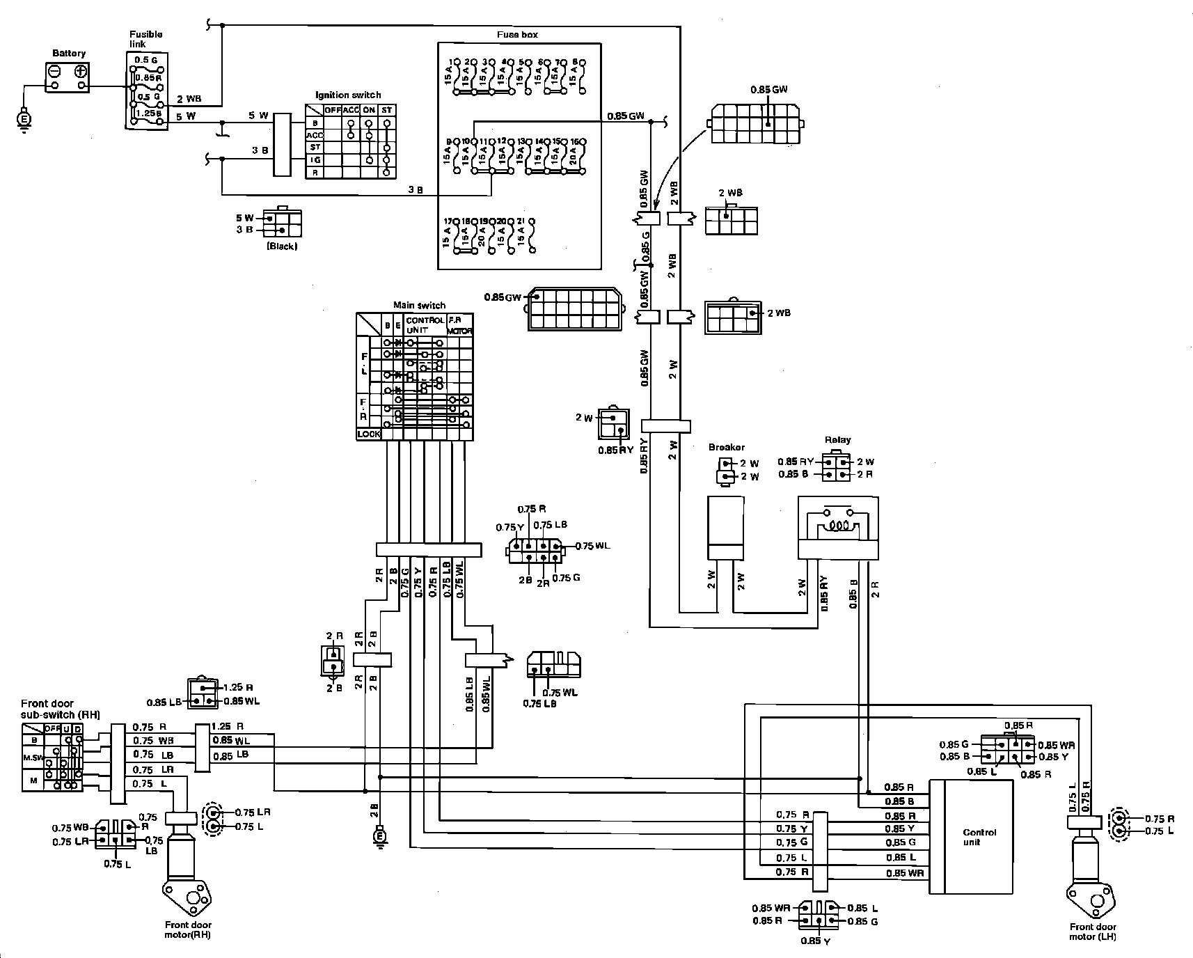 Fig. 94 Power Window System Wiring Circuit. 3 Door Models Exc. XT: