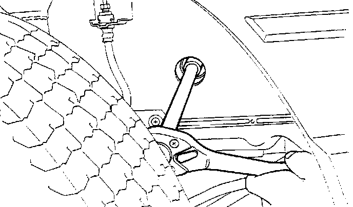 NOTE: Insert a 'T" wrench into the access hole in the wheelhouse to remove the bolts.