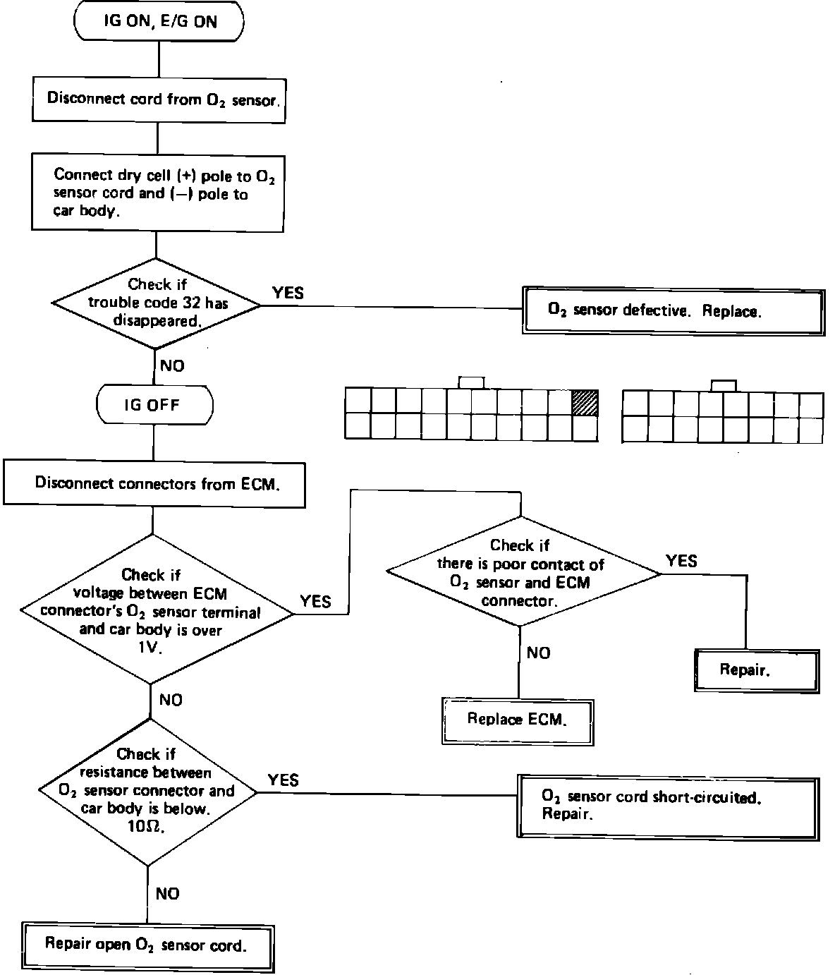 Fig. 33 Electronically controlled carburetor diagnostic chart. Trouble code 32.: