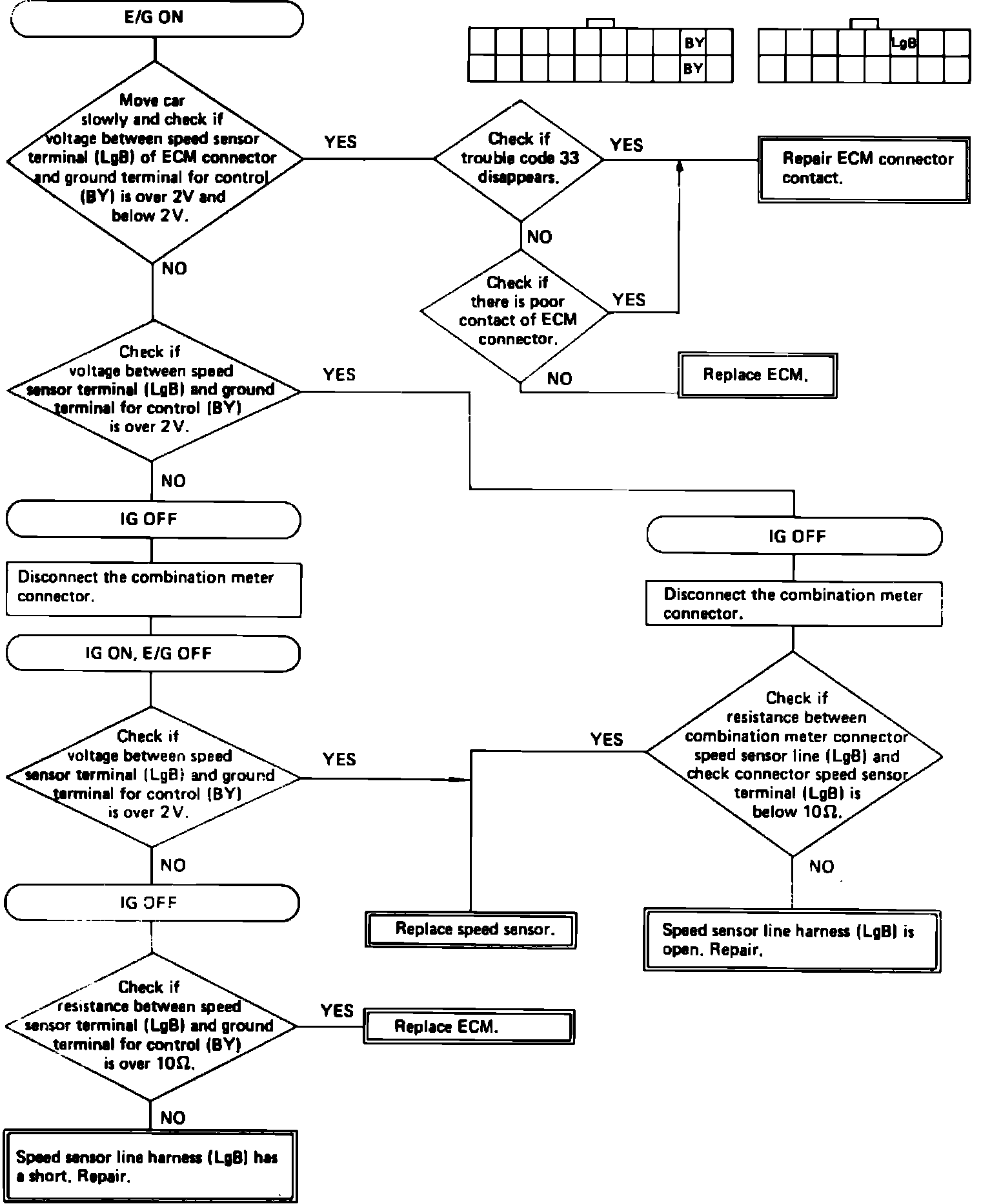 Fig. 34 Electronically controlled carburetor diagnostic chart. Trouble code 33.: