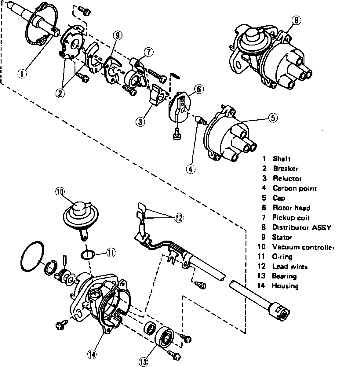 Fig. 6 Exploded view of Justy breakerless type distributor: