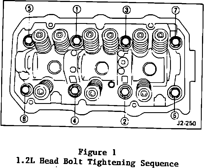 When reinstalling the cylinder head on 1.2 Liter Justy engines, the following revised head bolt torquing procedure must be followed.