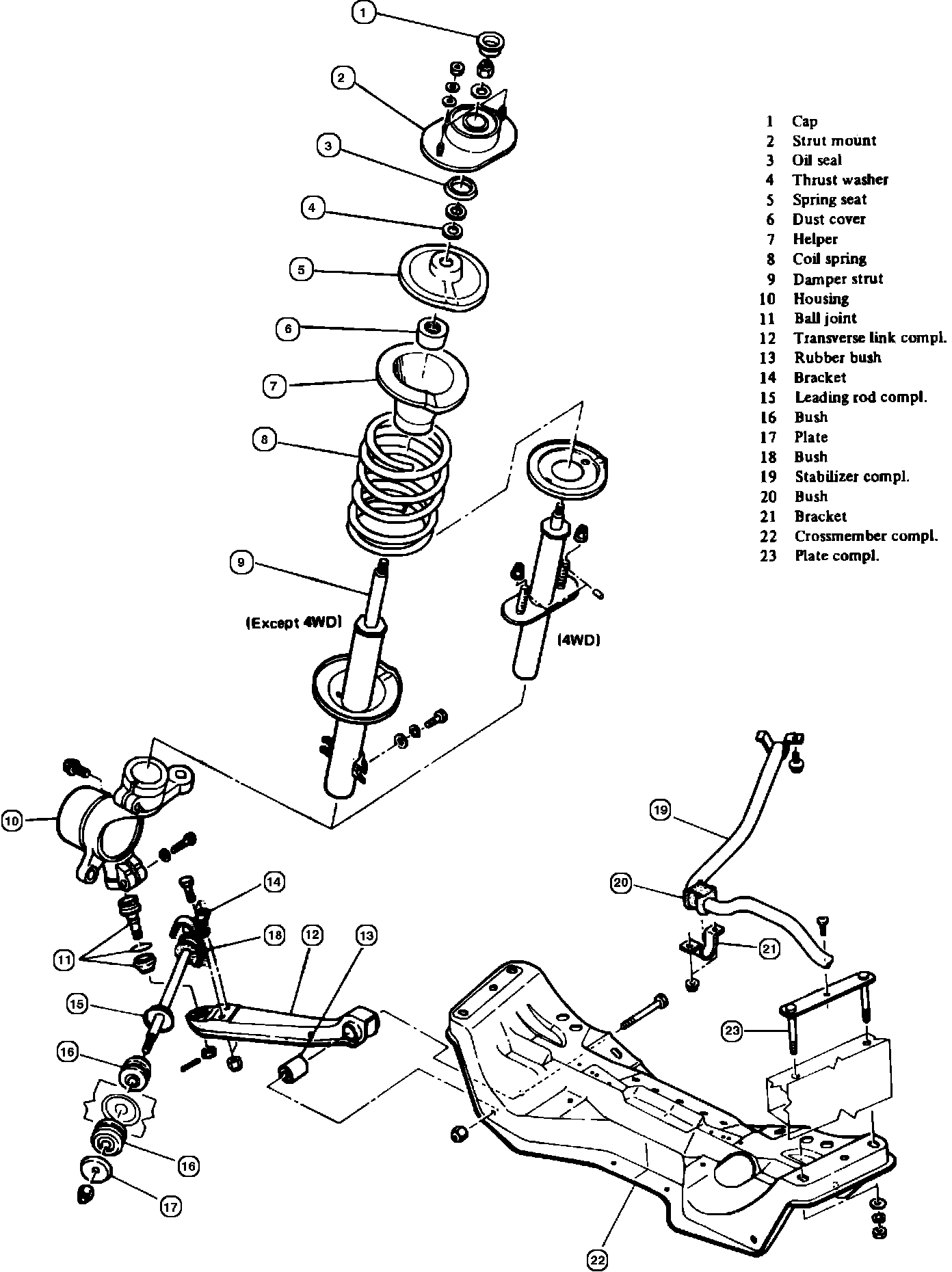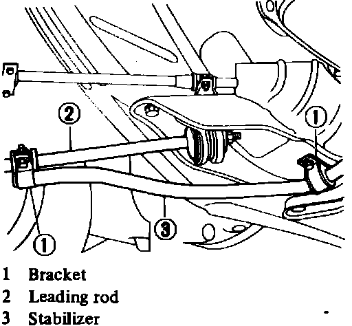 5. Disconnect stabilizer from leading rod and rear crossmember.