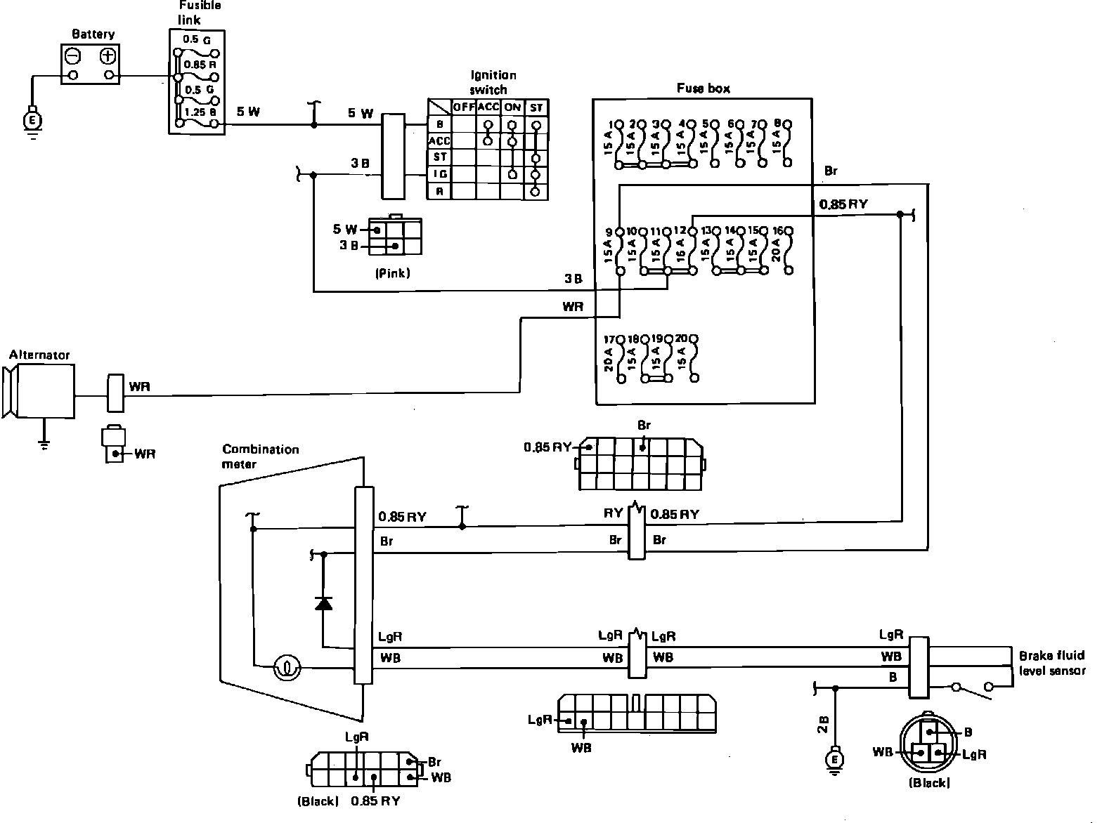 Fig. 110 Brake Fluid Level Warning Wiring Circuit. XT Models: