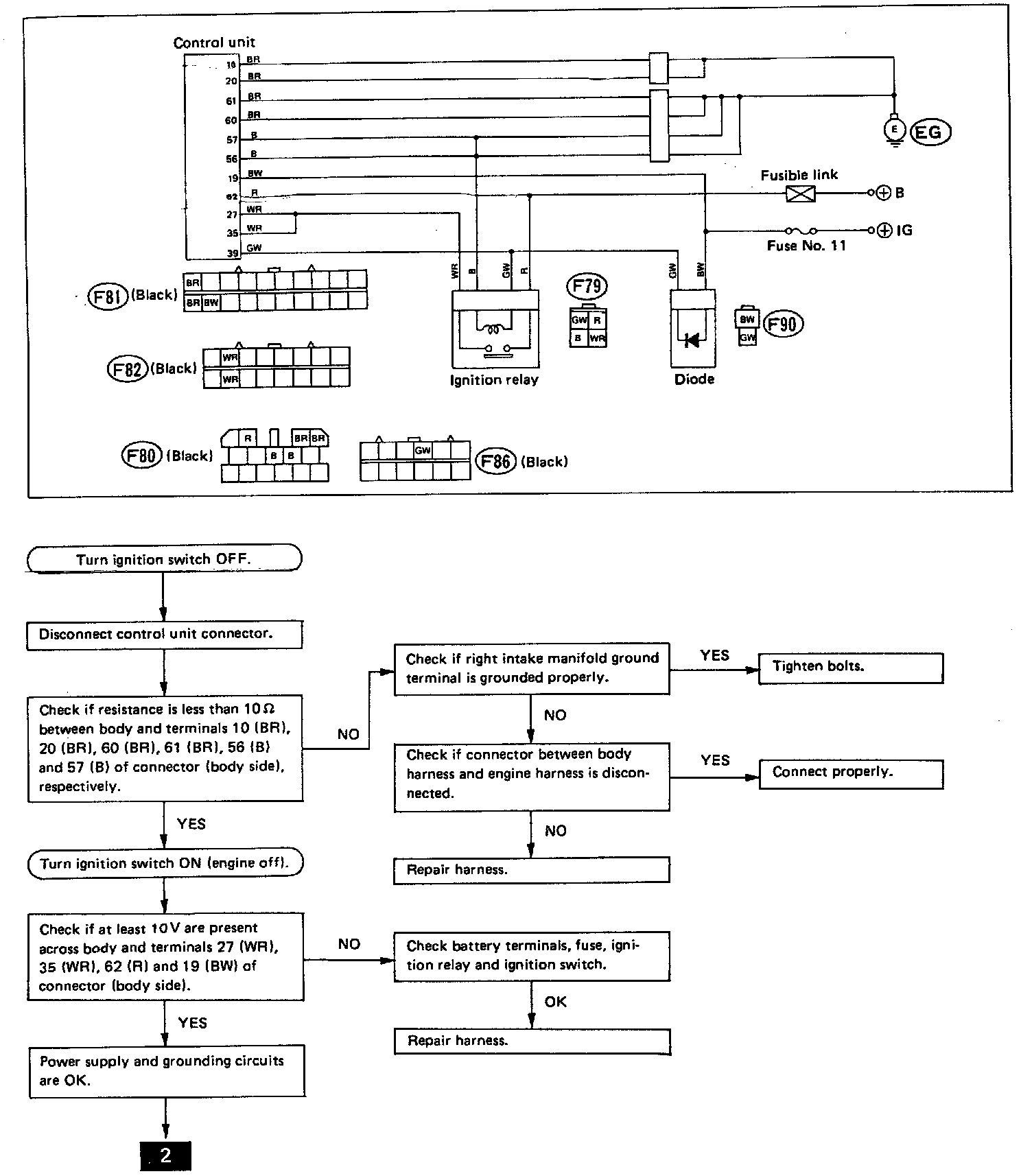 Fig. 25 EGI system troubleshooting chart. Ground & control unit power supply: