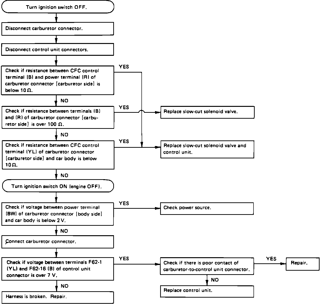 A faulty coasting fuel cut solenoid will set code 15 in the on-board diagnostic system. Refer to the schematic diagram and test the solenoid valve with the diagnostic chart.