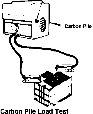 4) To remove surface charge, connect a carbon pile load tester (such as Sun VAT 40) across the battery terminals and apply a load equal to 1/2 the cold cranking amp (CCA) rating of the battery for 15 seconds.* Read battery terminal voltage again. If still 12.45 volts or above, proceed to load test. If not, charge battery.