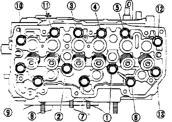 6. Loosen cylinder head bolts in two steps in reverse sequence as that shown in Fig. 24, then remove cylinder head from crankcase.