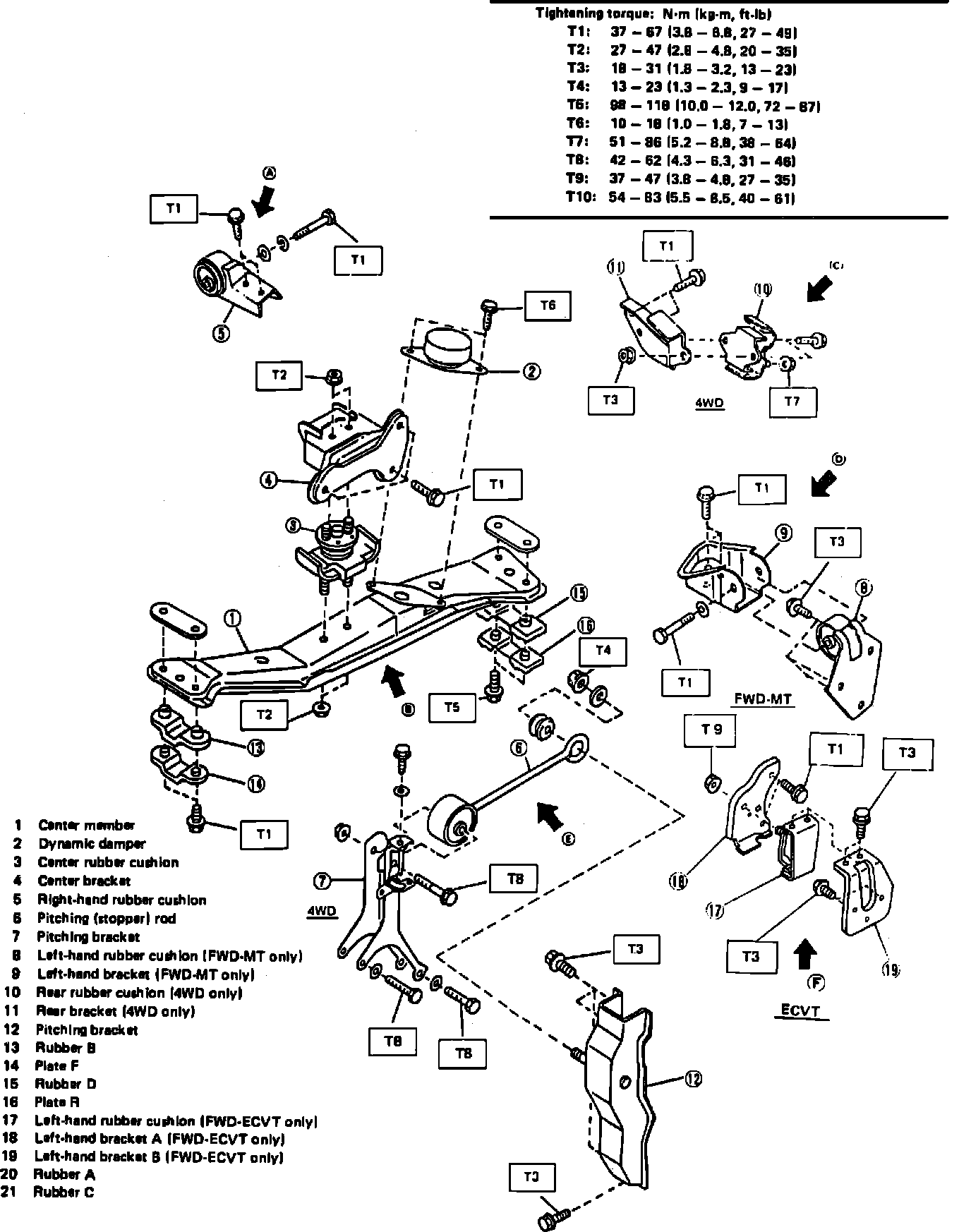16. Support engine using suitable hoist, then remove engine/transmission mounting brackets.
