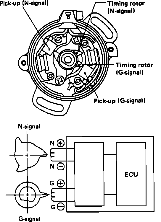 The N-signal is used to read crank angle and engine rpm. This signal is used for injection and ignition timing.