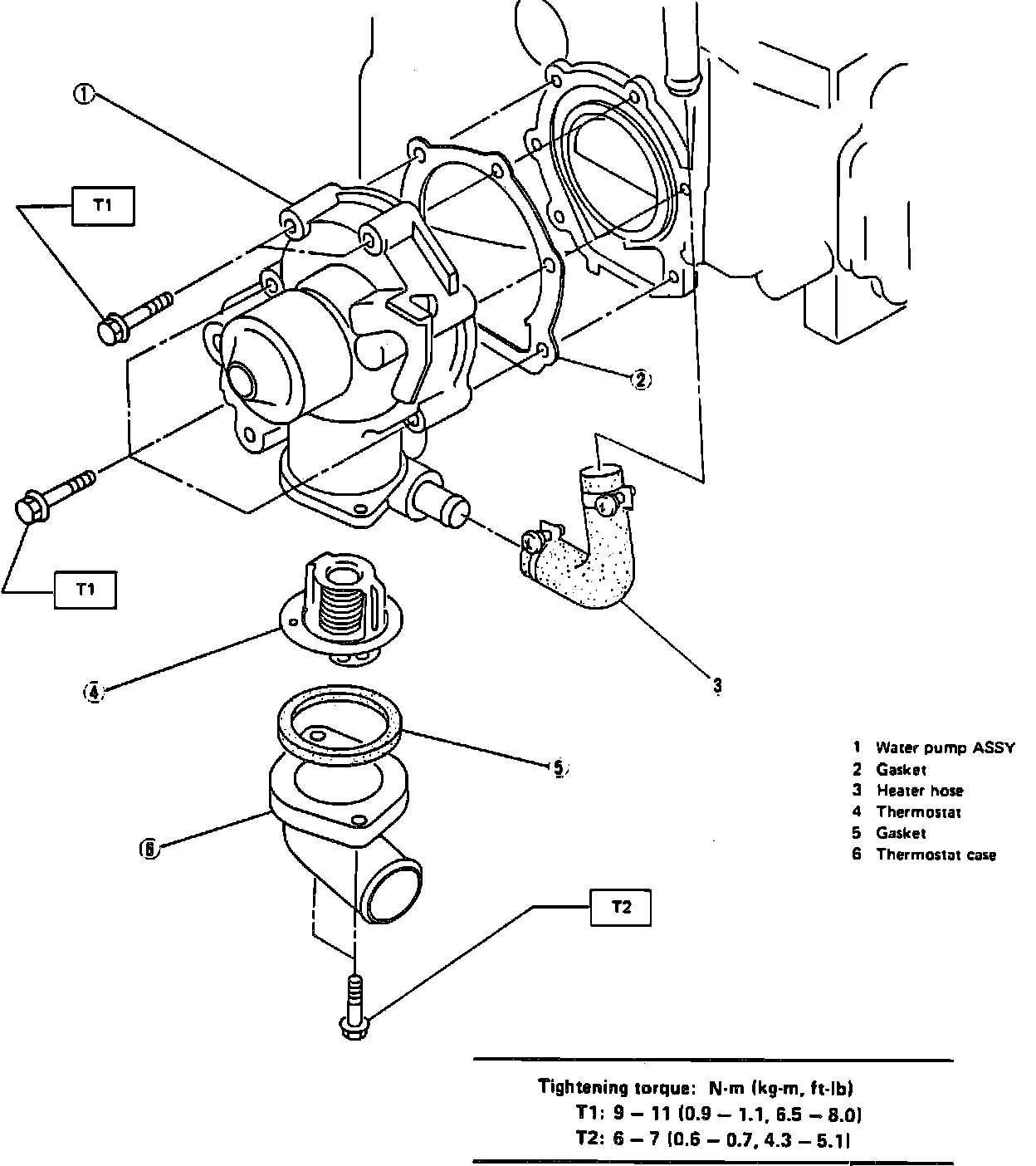 7. Disconnect heater and radiator hose from water pump.