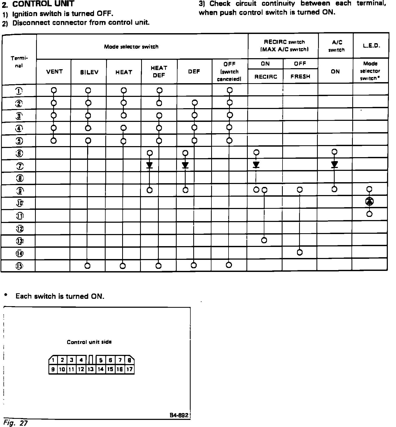 Control Unit Testing (Manual A/C):