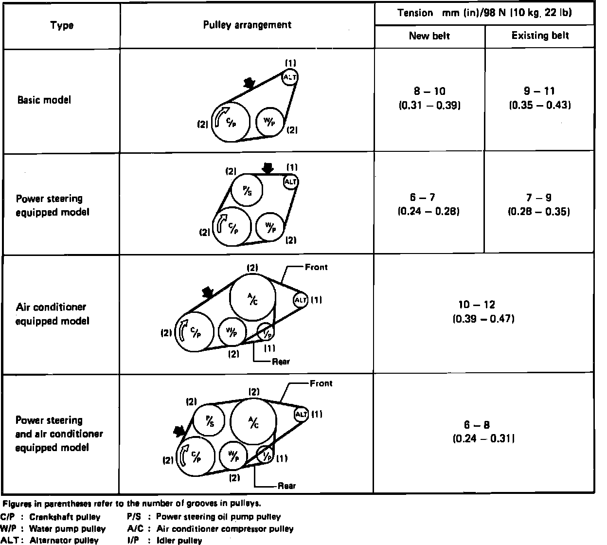 Fig. 57 Drive Belt Routing & Tension Data: