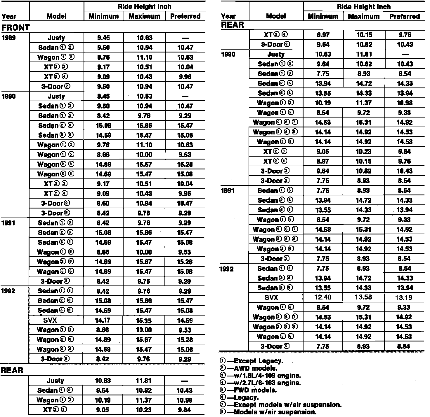 Vehicle Ride Height Specifications: