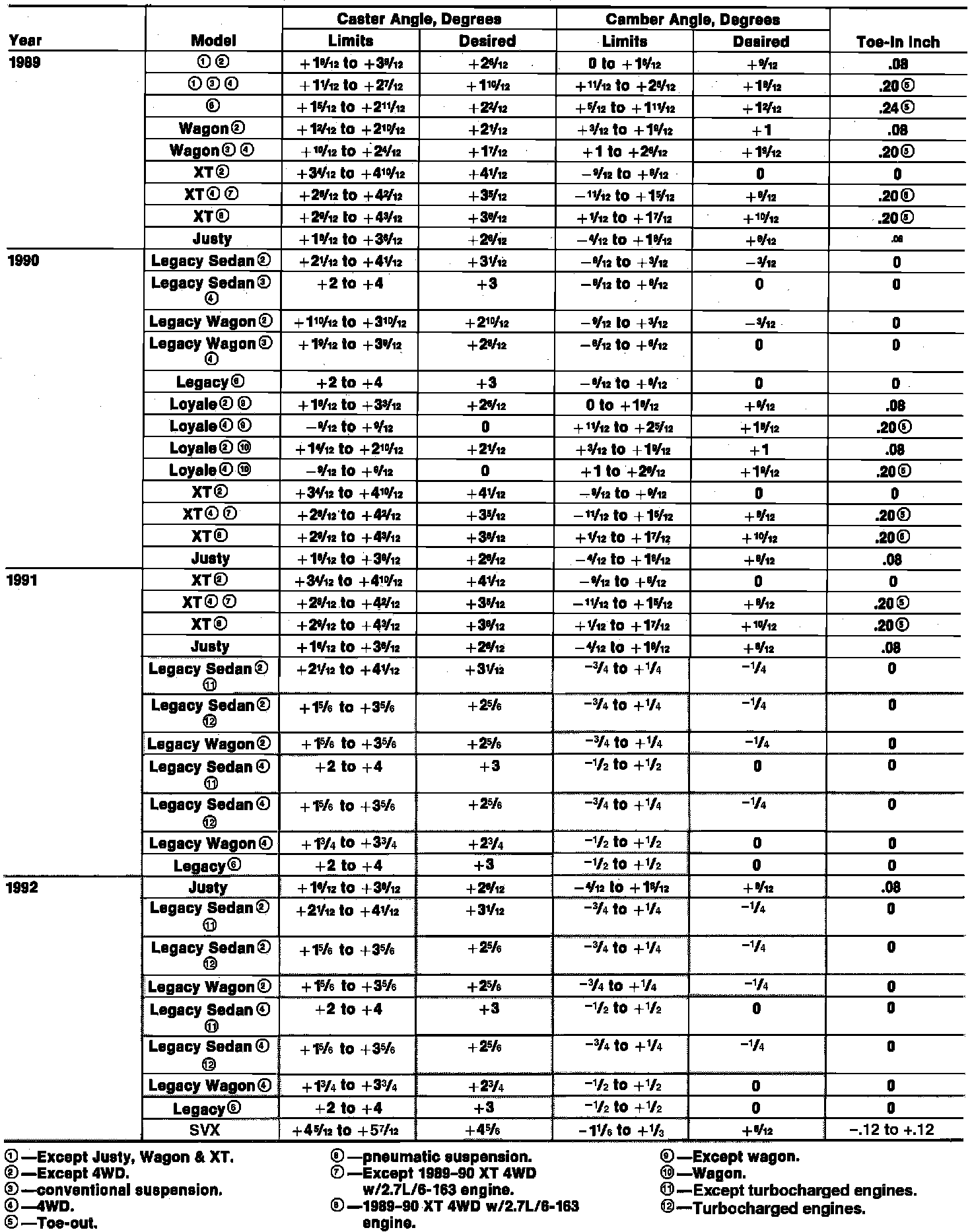 Front Wheel Alignment Specifications: