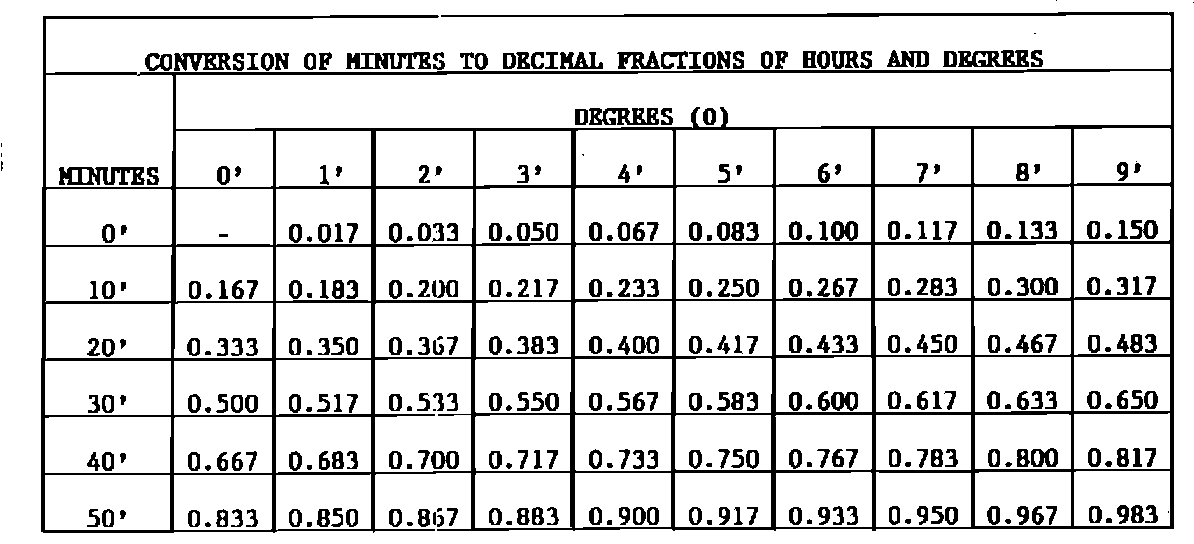CONVERSION OF MINUTES TO DECIMAL FRACTIONS OF HOURS AND DEGREES