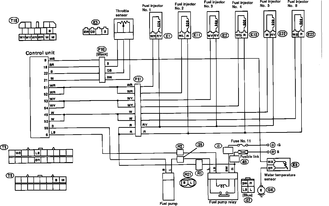 A faulty fuel pump relay does not set a trouble code in the on-board diagnostic system. Refer to the schematic diagram and test the system with the diagnostic chart.