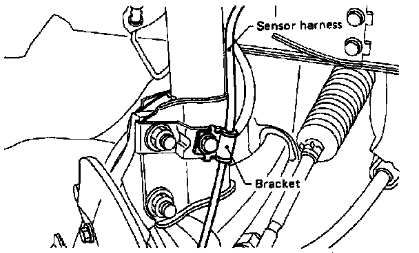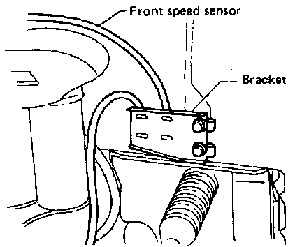4) Install front speed sensor on strut and wheel apron bracket.