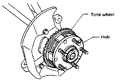 5) Place a thickness gauge between speed sensor's pole piece and tone wheel's tooth face. After standard clearance is obtained over the entire perimeter, tighten speed sensor on back plate to specified torque.