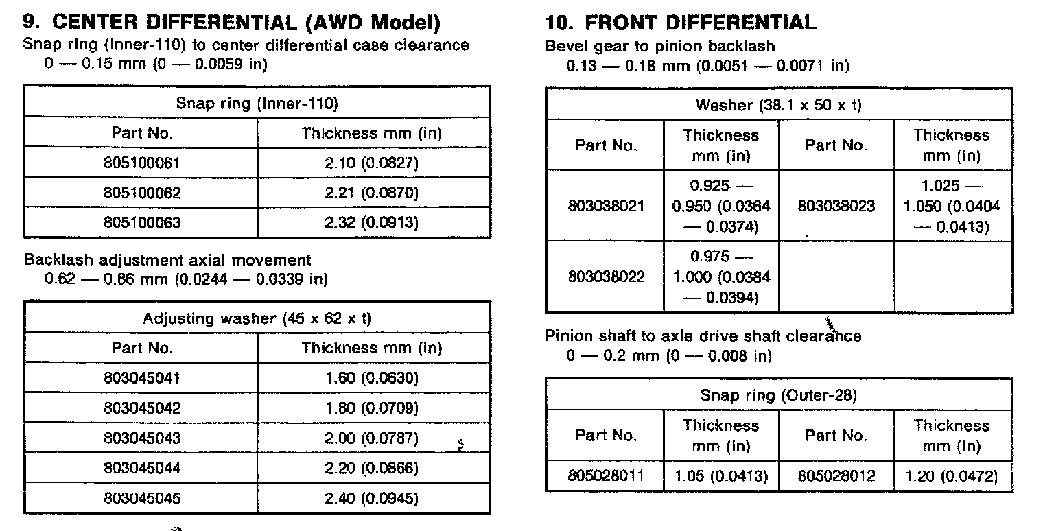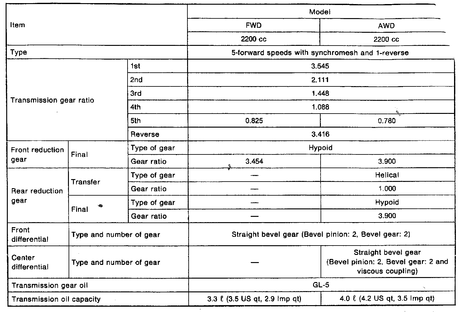 5-spd M/T, Center Differential (AWD) & Front Differential: