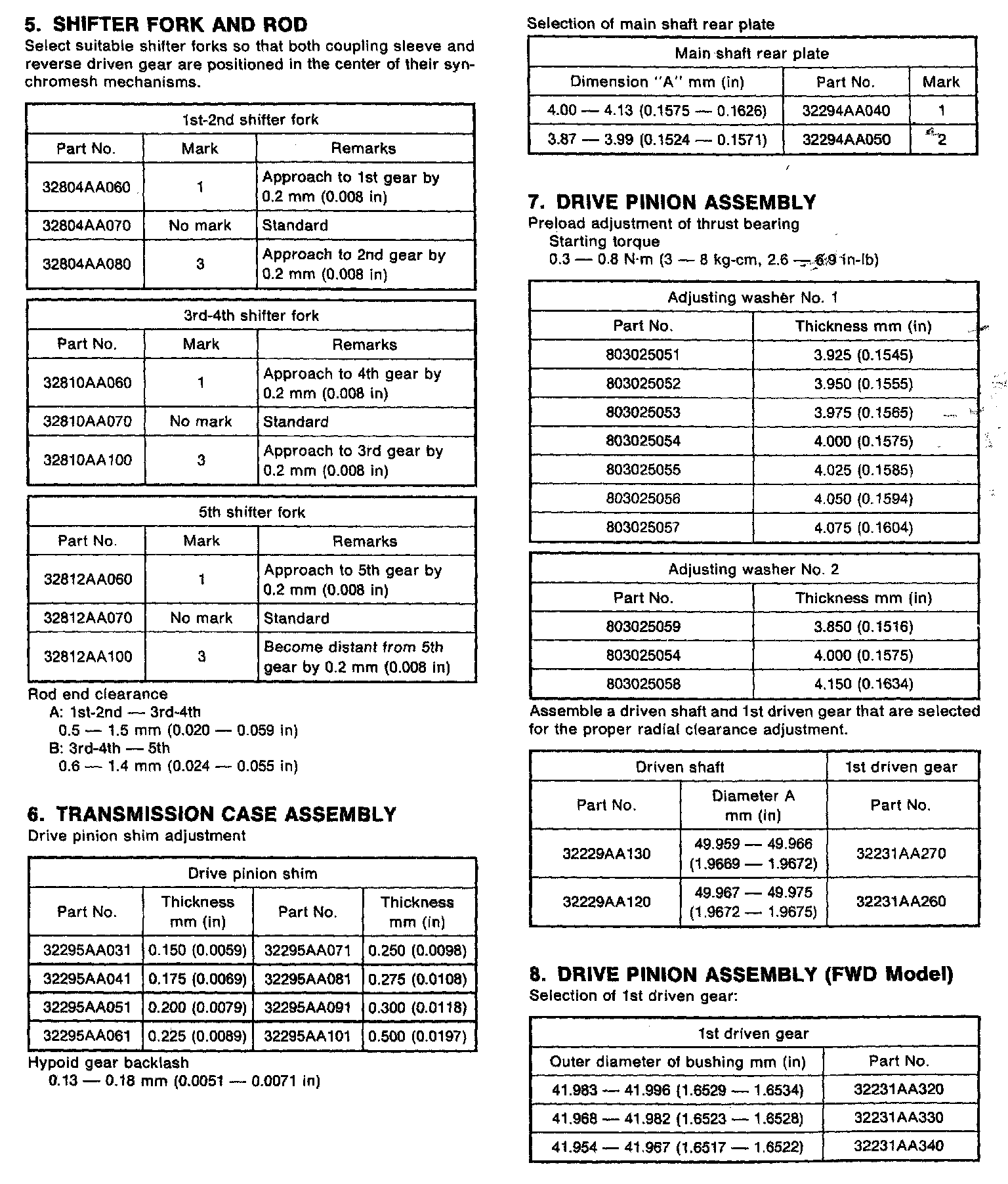 5-spd M/T, Shifter Fork And Rod, Transmission Case & Drive Pinion (FWD):
