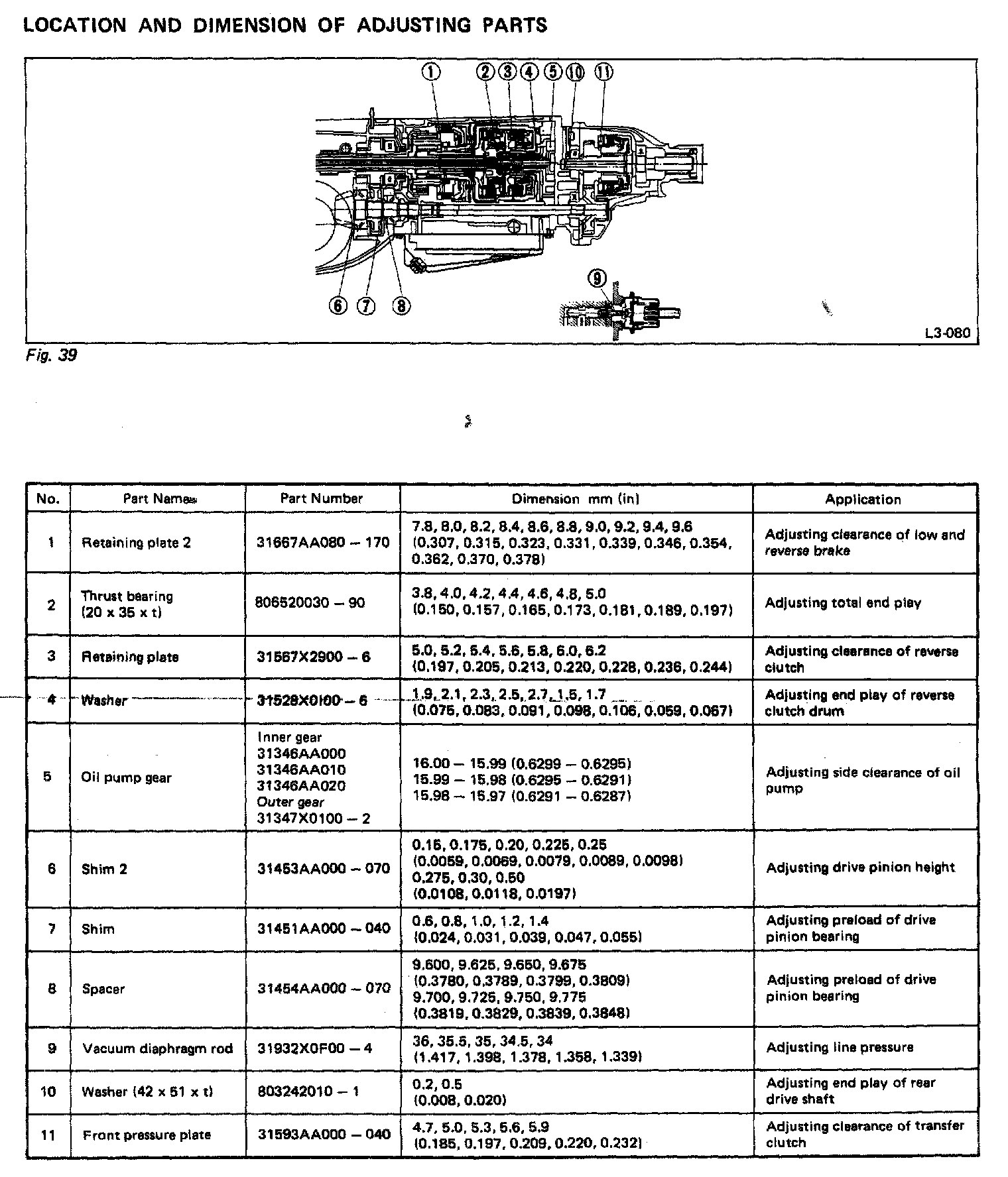 3-spd A/T, Transmission Location & Dimension Of Adjusting Parts: