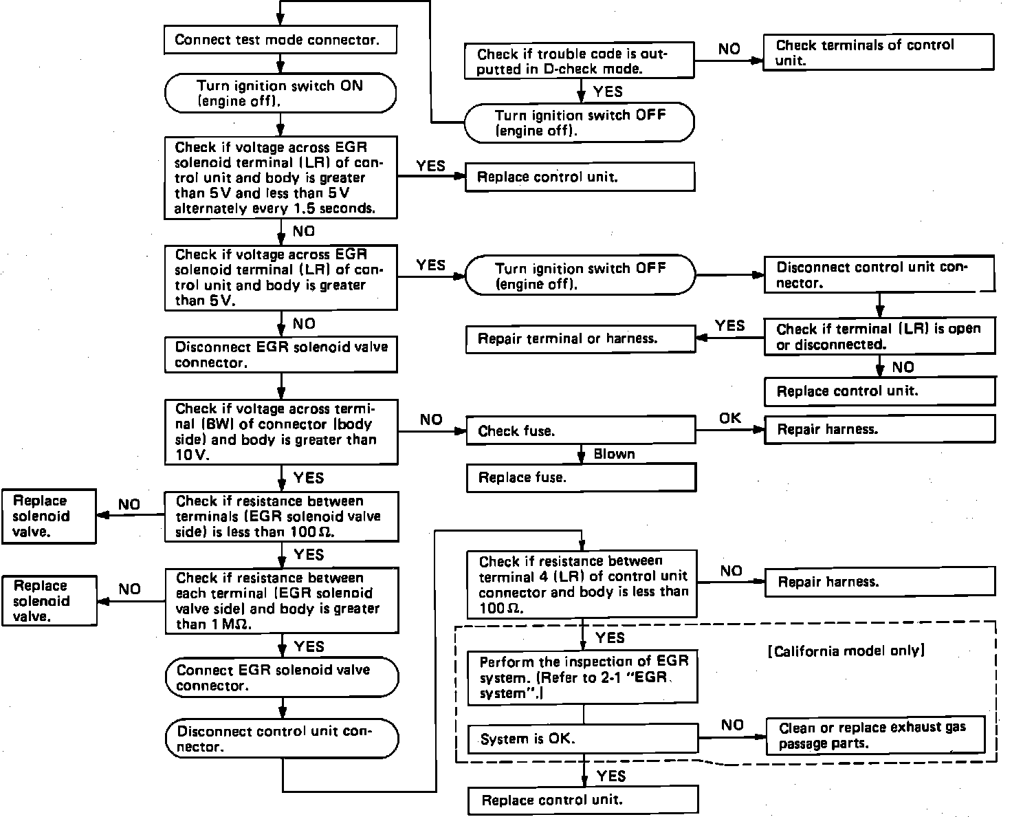 A faulty EGR solenoid will set code 34 in the on-board diagnostic system. Refer to the schematic diagram and test the solenoid with the diagnostic chart.