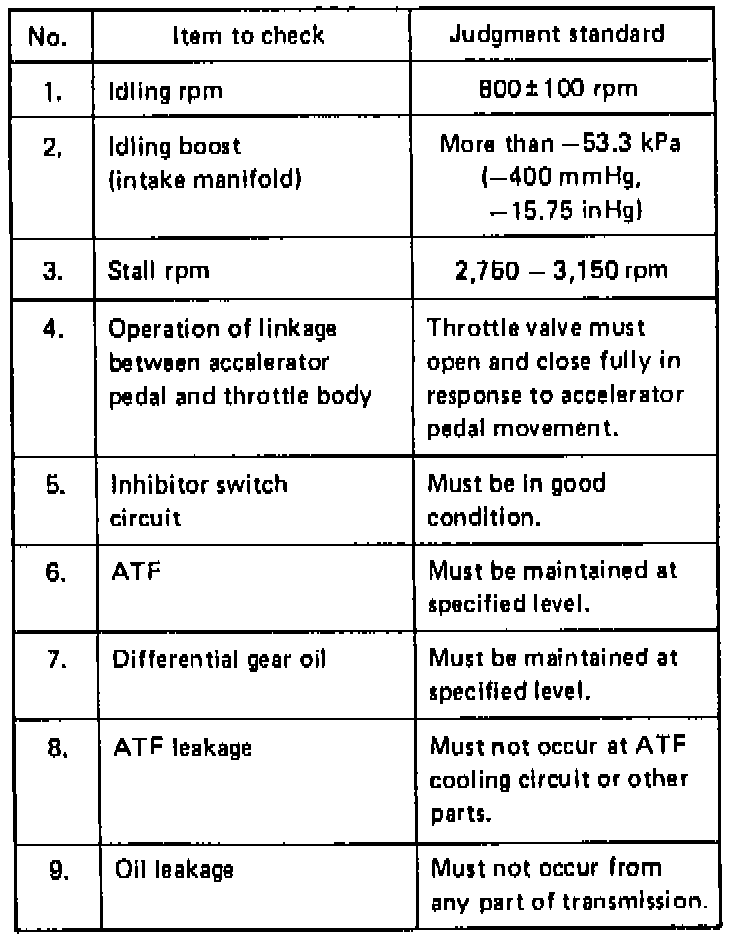 Prior to electronic or mechanical trouble diagnosis, inspect the following and correct as needed: