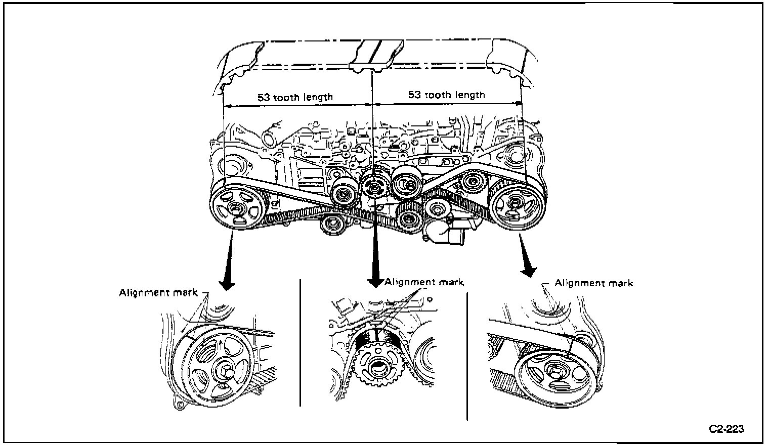 Incorrect removal or installation of the timing belt can result in damage to internal engine components.