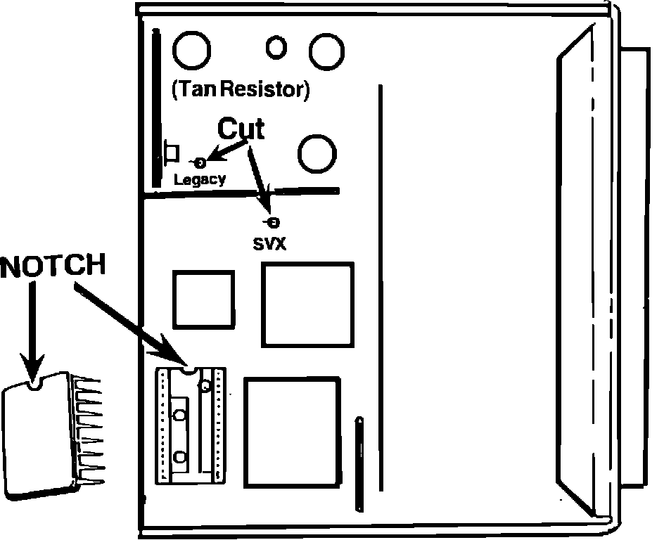 7. Locate the tan resistor. See illustration. Remove the resistor by carefully cutting the two leads near the circuit board. This resistor must be removed to activate the ROM. Do not remove the resistor using a solder iron. This will damage the board.