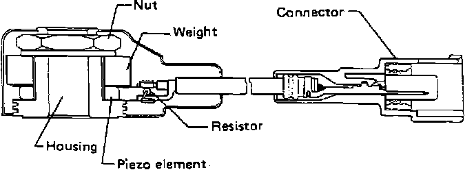 The sensors generate a signal whenever a vibration is sensed. When a knock occurs, the piezo-electric crystal (piezo element) in the sensor is compressed by the weight above it. The squeezing of the crystal, generates a low voltage signal readable by the ECU.