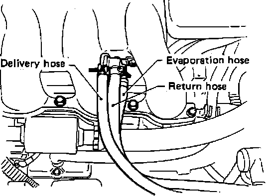 3. In the engine compartment, detach fuel delivery and return hoses and evaporation tube.
