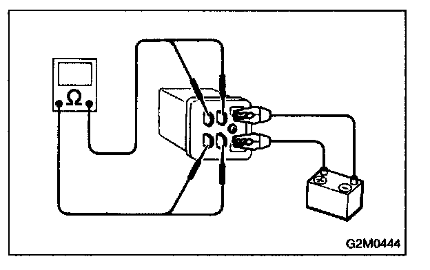 4. Measure resistance between main relay terminals.