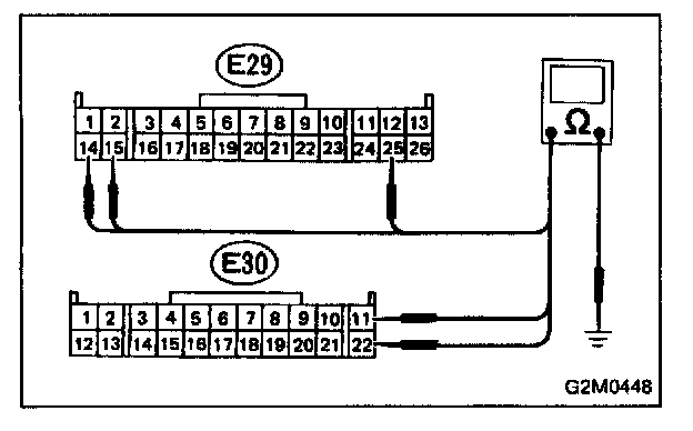 2. Measure resistance of harness connector between ECM and body.