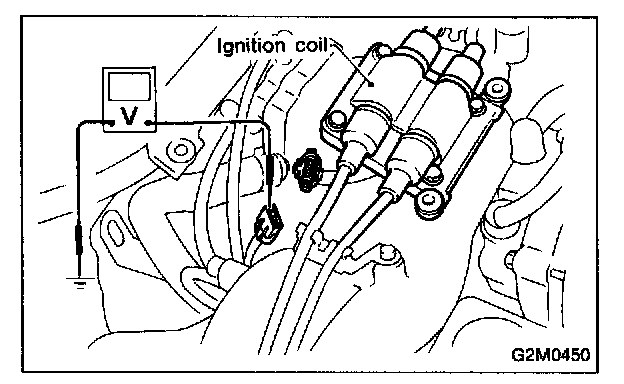 4. Measure power supply voltage between ignition coil connector terminal and body.