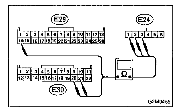 3. Measure resistance of harness connector between ECM and body to make sure that circuit does not short.