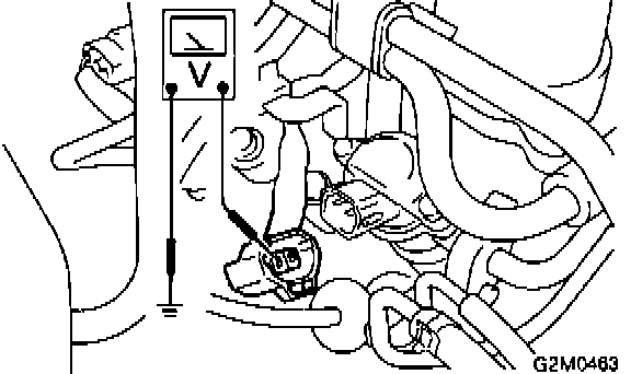 4. Measure voltage between each injector connector terminal and body.