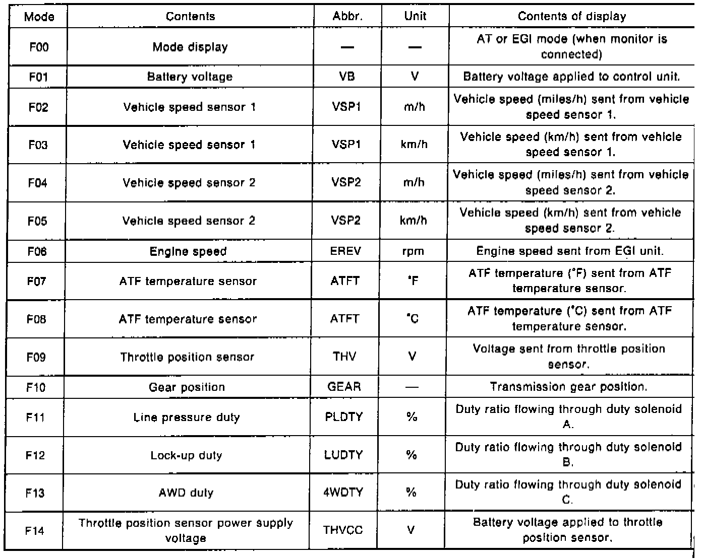 Select Monitor Function Mode Chart: