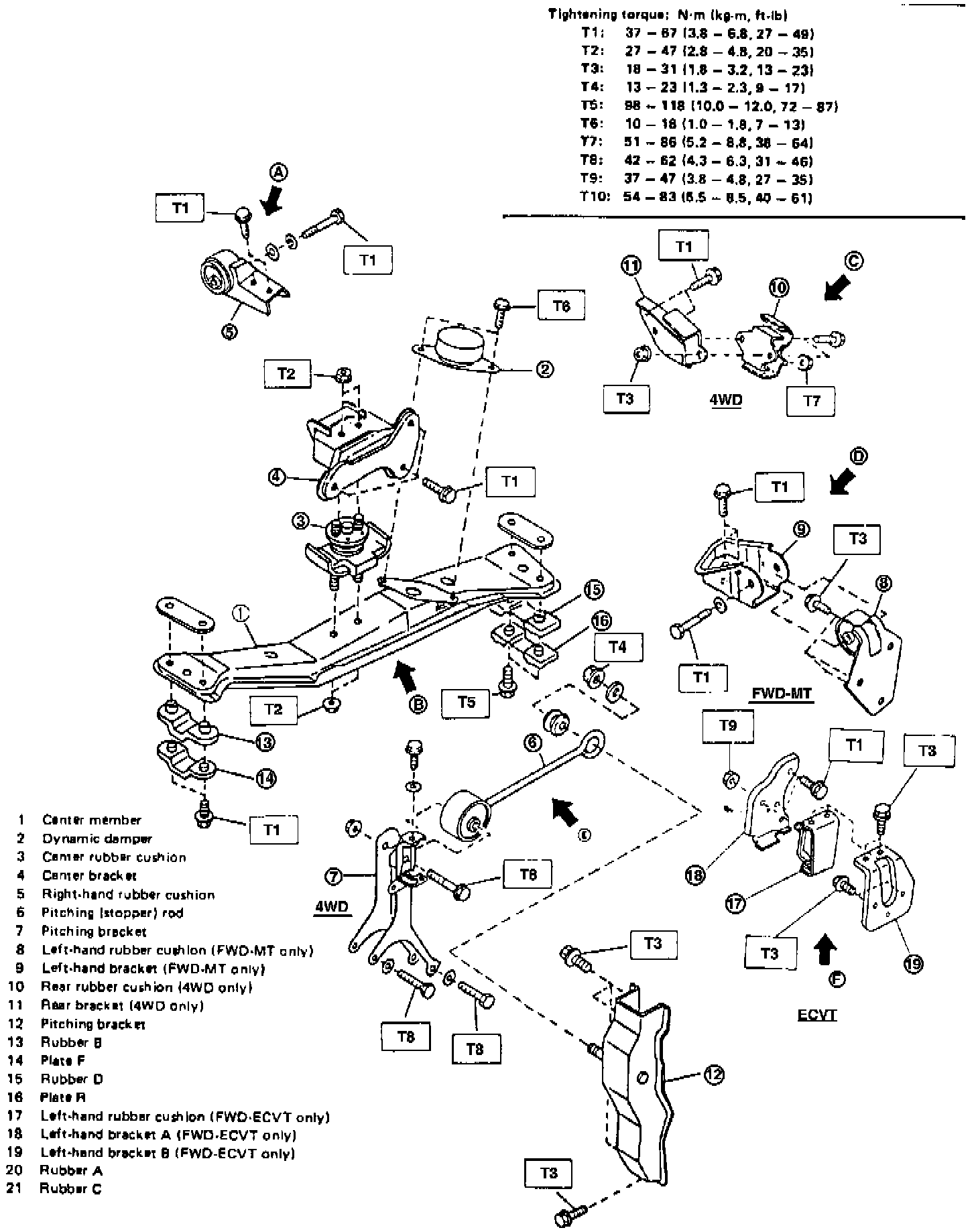 17. Raise engine slightly, then remove center member and crossmember.