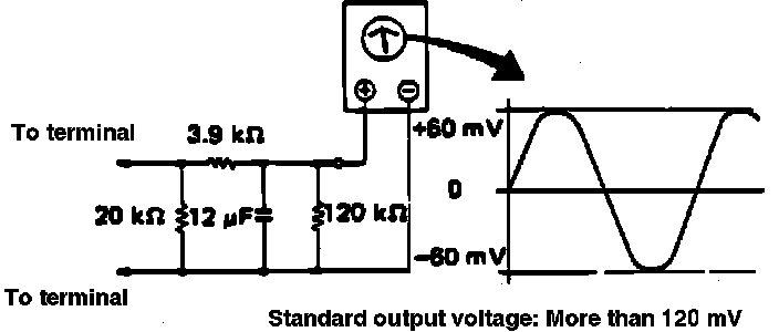 6. Output voltage can be checked by installing resistor and condenser as shown in Fig. 36, then rotating wheel at 1.7 mph.