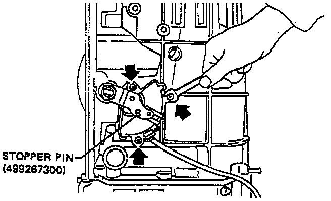 (4) With hole aligned, tighten three bolts to secure the [1][2]inhibitor switch.