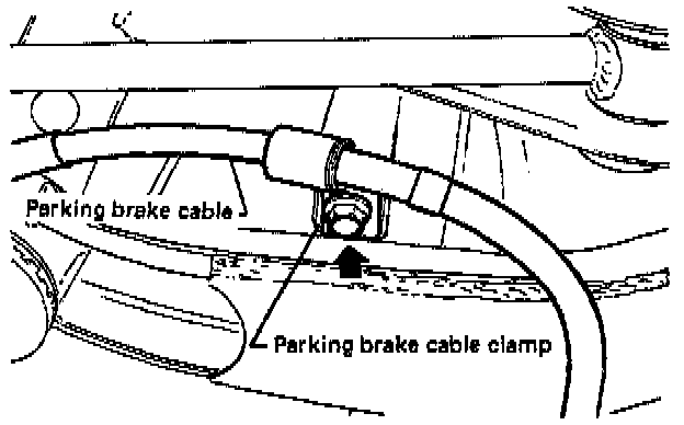 (2) Remove the parking brake cable clamp from the rear axle frame.